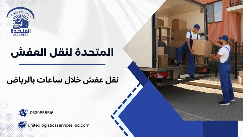 تعتبر خدمات نقل عفش خلال ساعات بالرياض من أهم الحلول لتسهيل الانتقال بسرعة وأمان سواء للمنازل أو الفيلات أو المكاتب وشركة المتحدة توفر خبرة واحترافية في تنفيذ نقل عفش سريع في الرياض بدون تأخير مع الاهتمام الكامل بـ تغليف وحماية الأثاث قبل النقل وتغطية شاملة لجميع الأحياء وخدمات نقل أثاث لجميع مناطق الرياض مما يجعل تجربة النقل مريحة وموثوقة بالاعتماد على أفضل شركة نقل عفش بالرياض يمكن للعملاء ضمان النقل الآمن لكل قطع الأثاث والأجهزة الكهربائية مع توفير الوقت والجهد، لتصبح عملية الانتقال سهلة ومرنة وتلبي جميع احتياجات العملاء بكفاءة عالية.